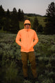 Durable, warm, and quiet, Orange Aglow's Ridgerunner Softshell jacket is an excellent cooler weather safety option. The jacket is designed with a little extra room to fit over other layers.